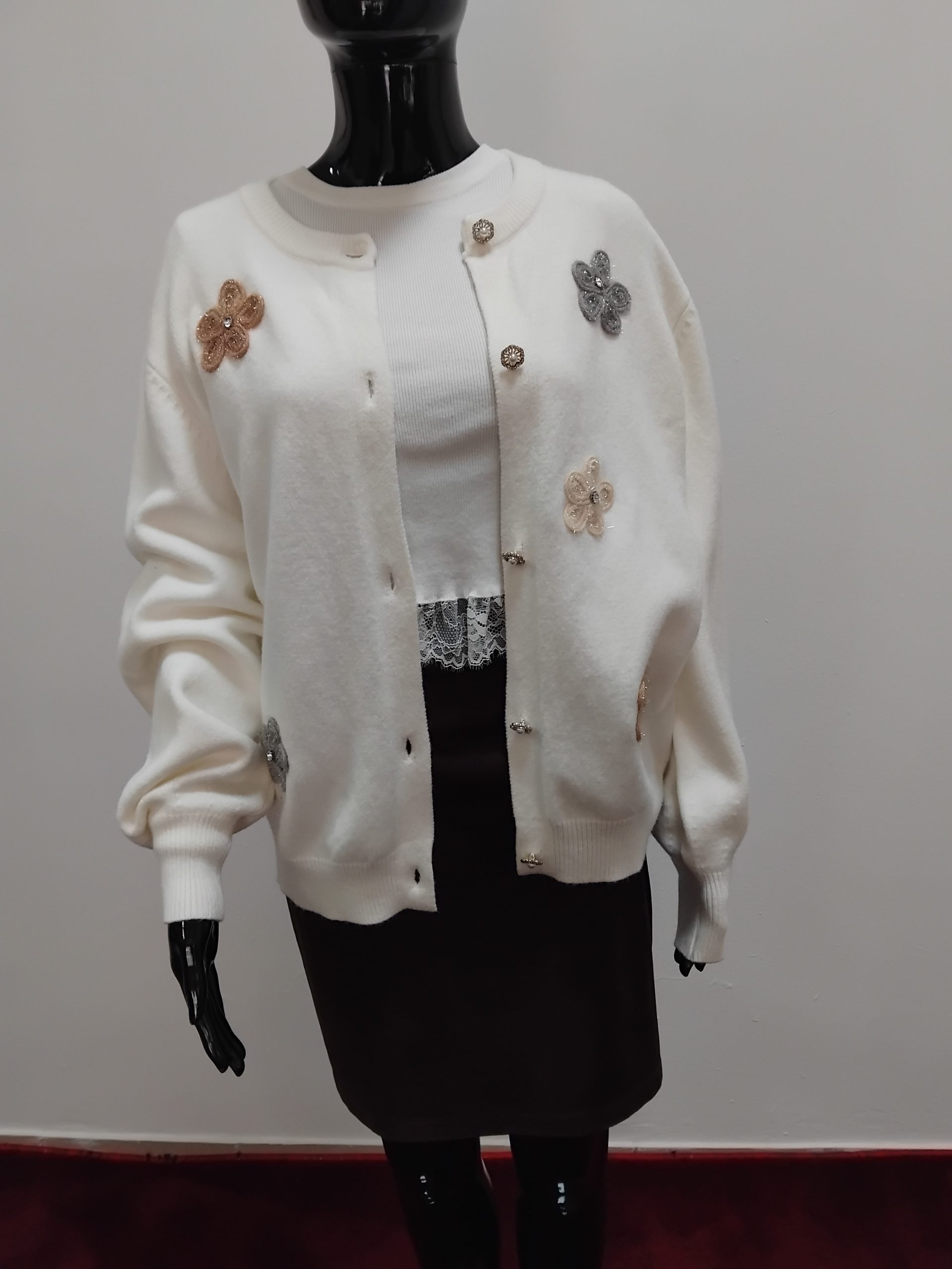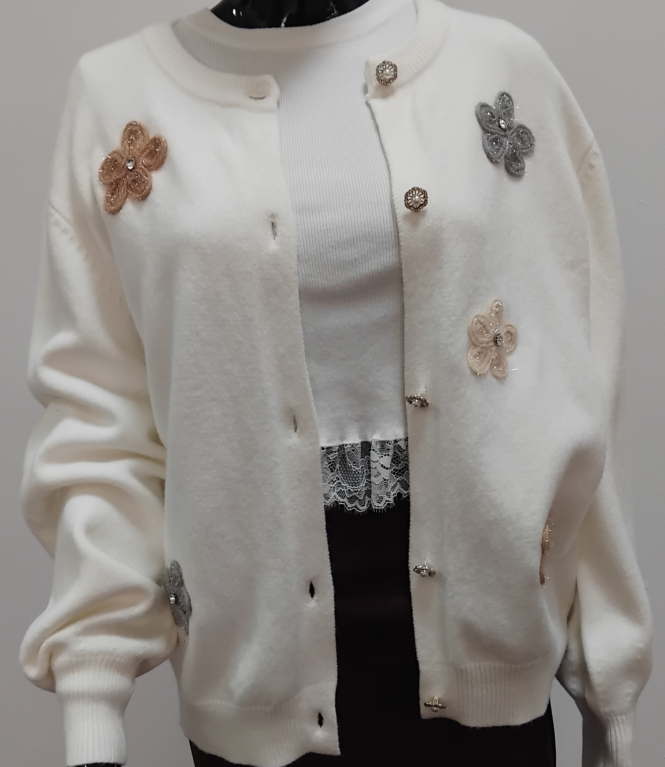 - διακοσμητικά μάλλινα λουλούδια με λεπτομέρεια στρας στο κέντρο