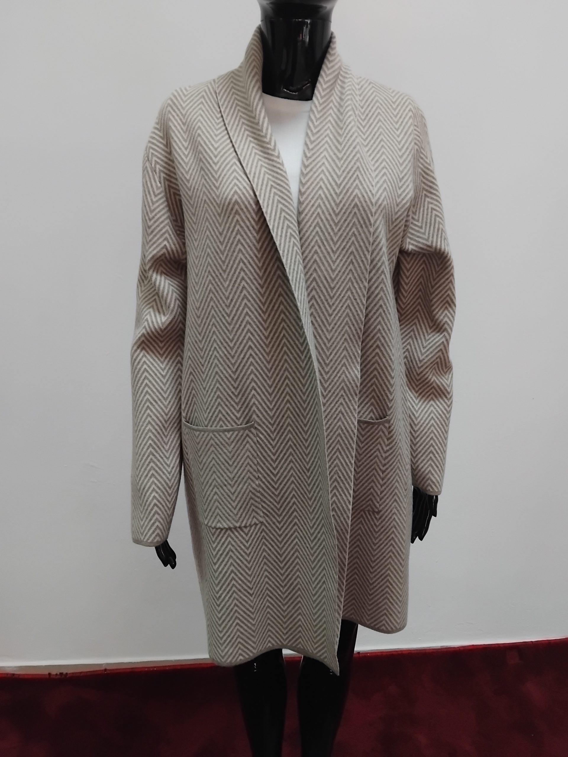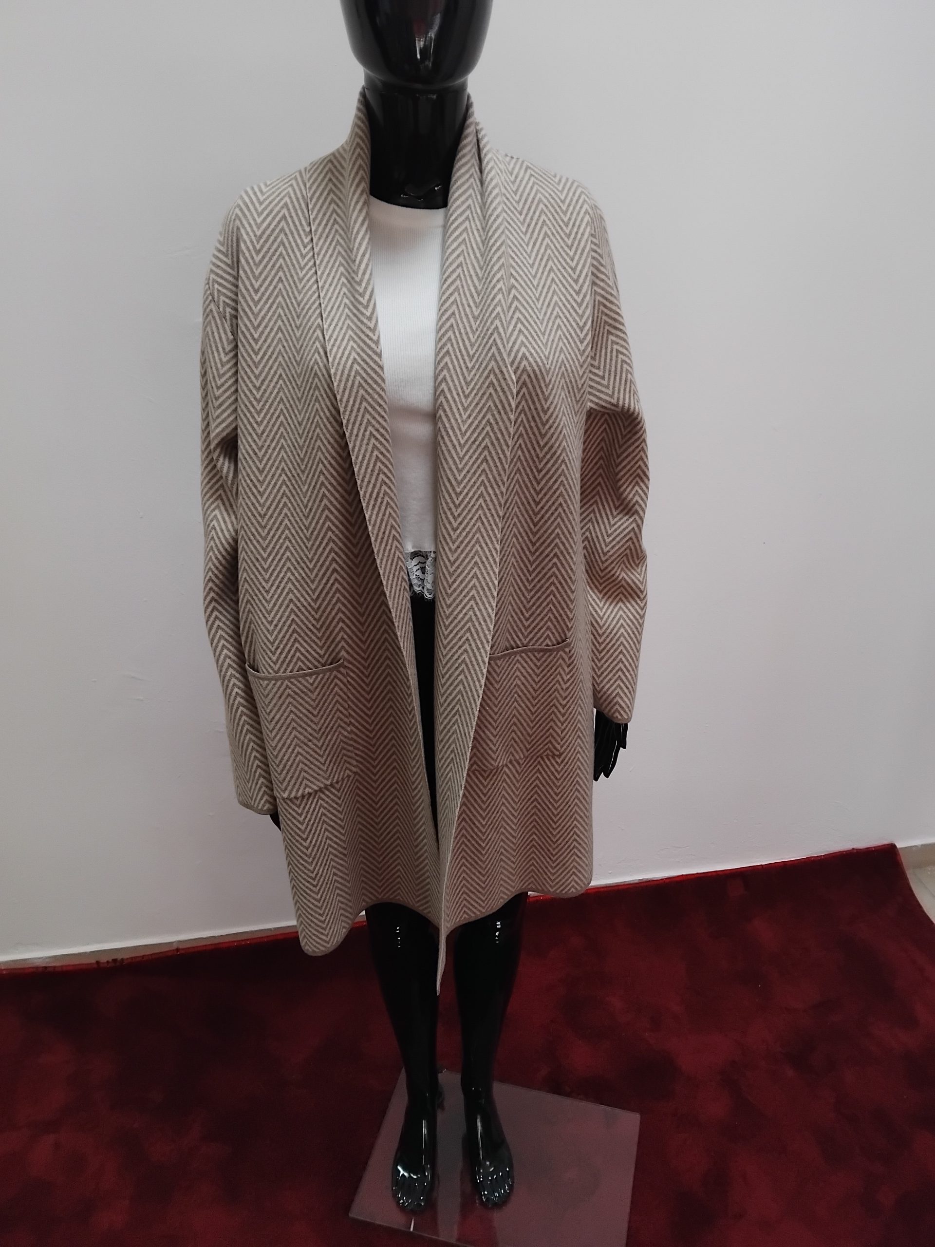 ζακέτα μακριά με τσέπες μπροστά ζικ-ζακ σχέδιο
