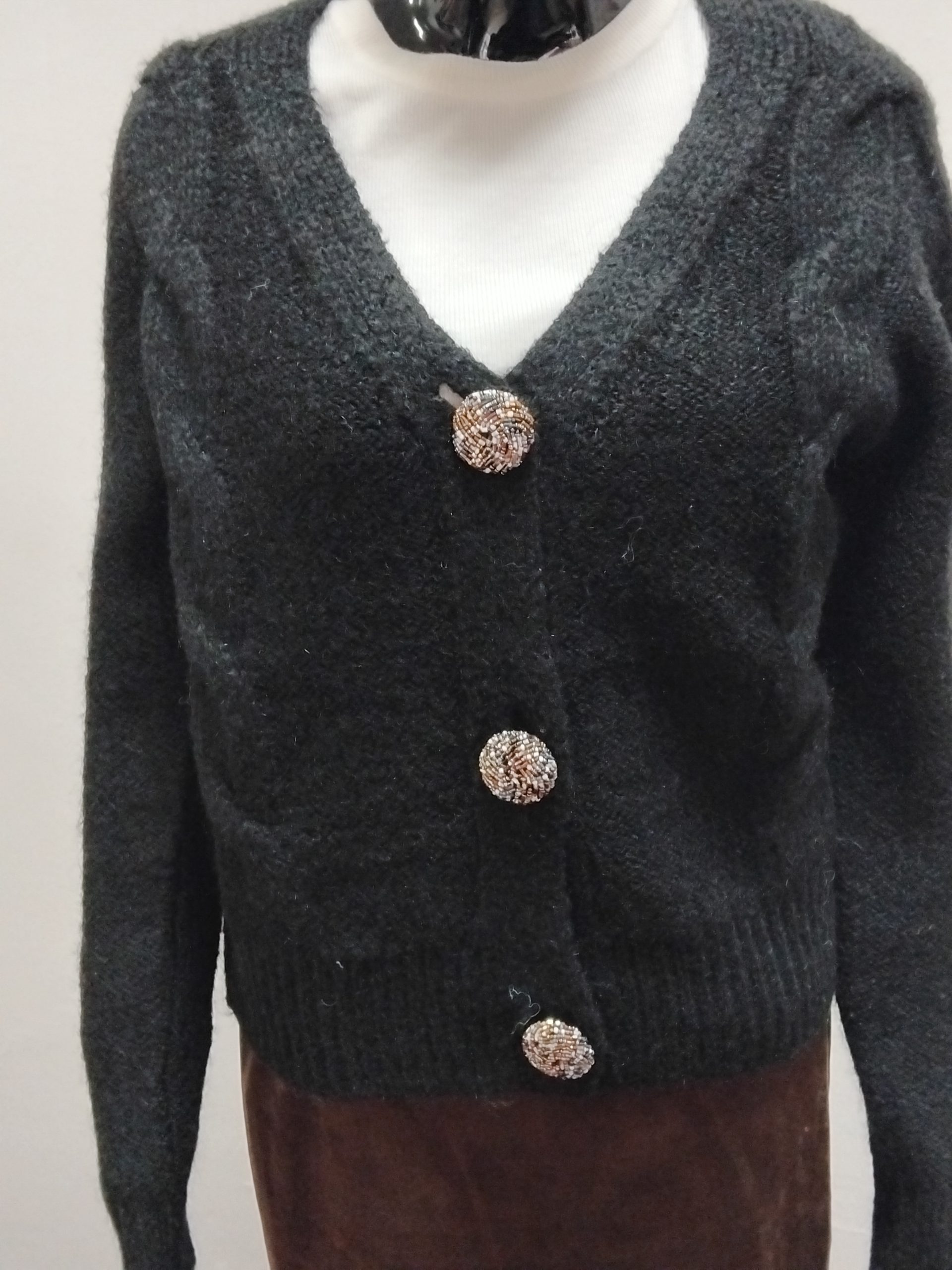 ζακέτα πλεκτή μάλλινη χοντρή με μεγάλα κουμπιά κεντημένα με πετραδάκια σε άνετη γραμμή