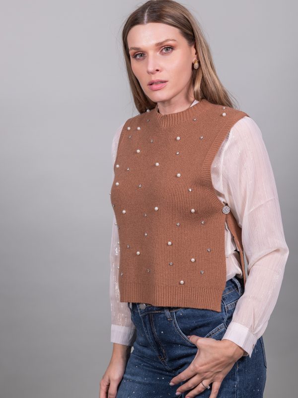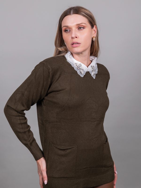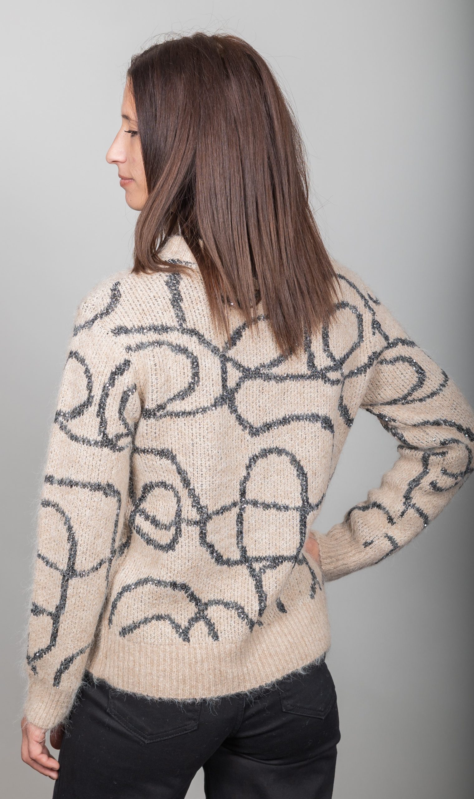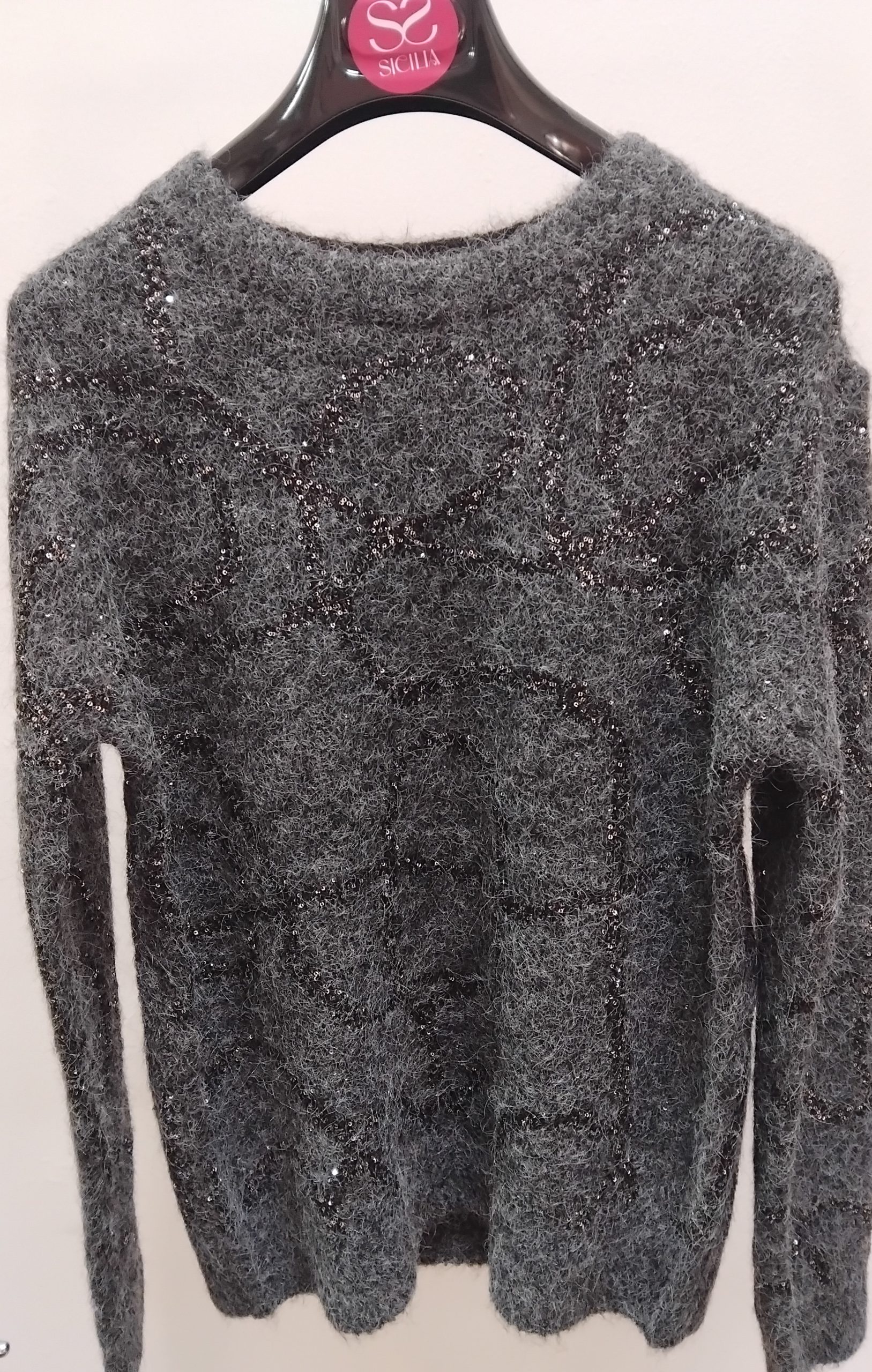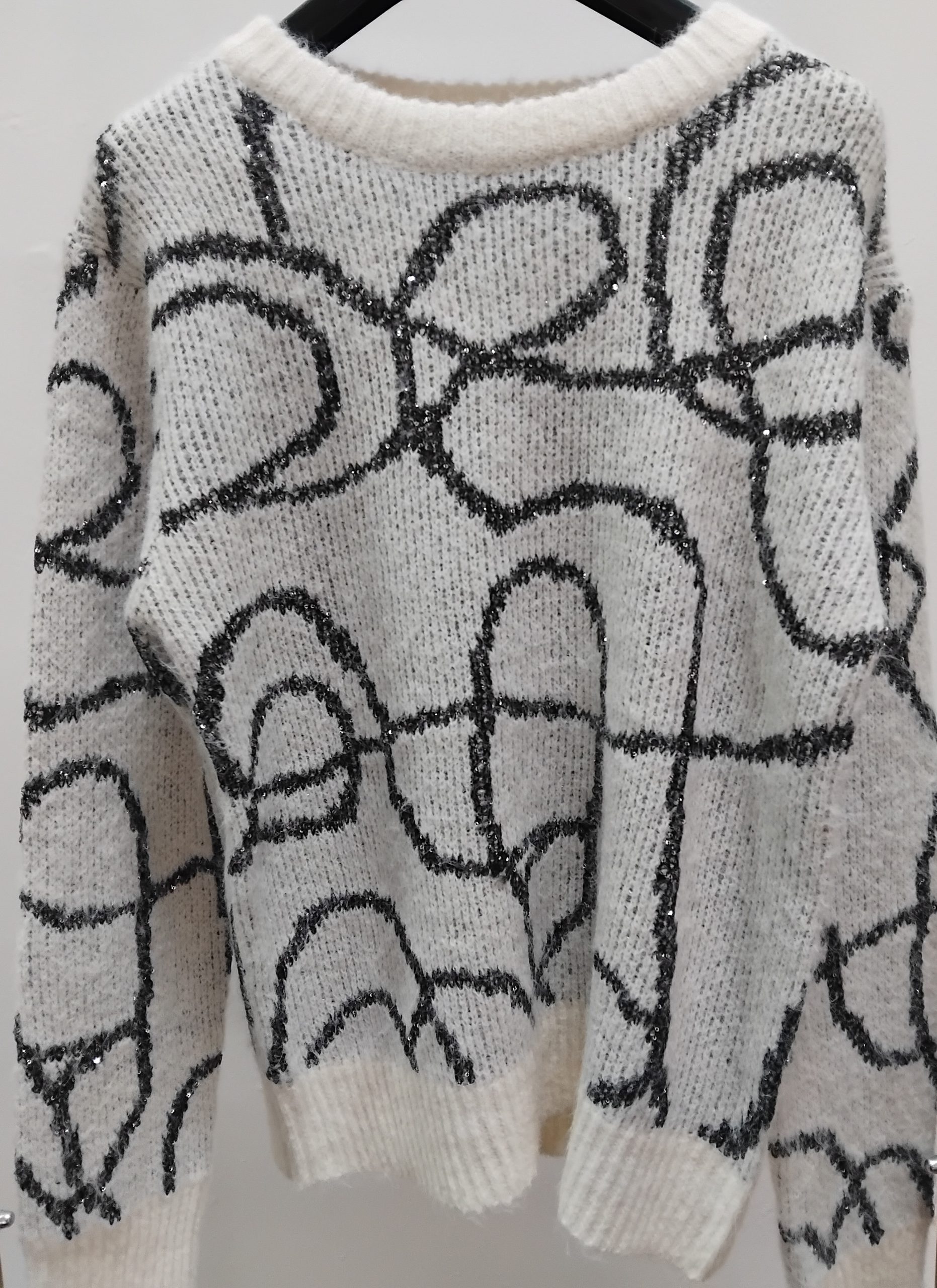 - πλεκτά σχέδια σε όλη την μπλούζα με διακριτικές μικρές ασημί λεπτομέρειες στ0 εσωτερικό