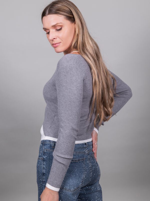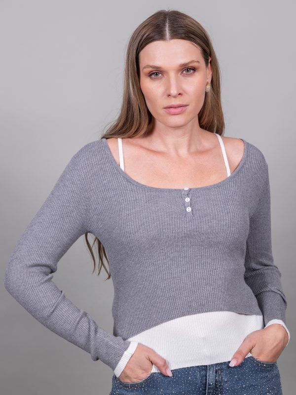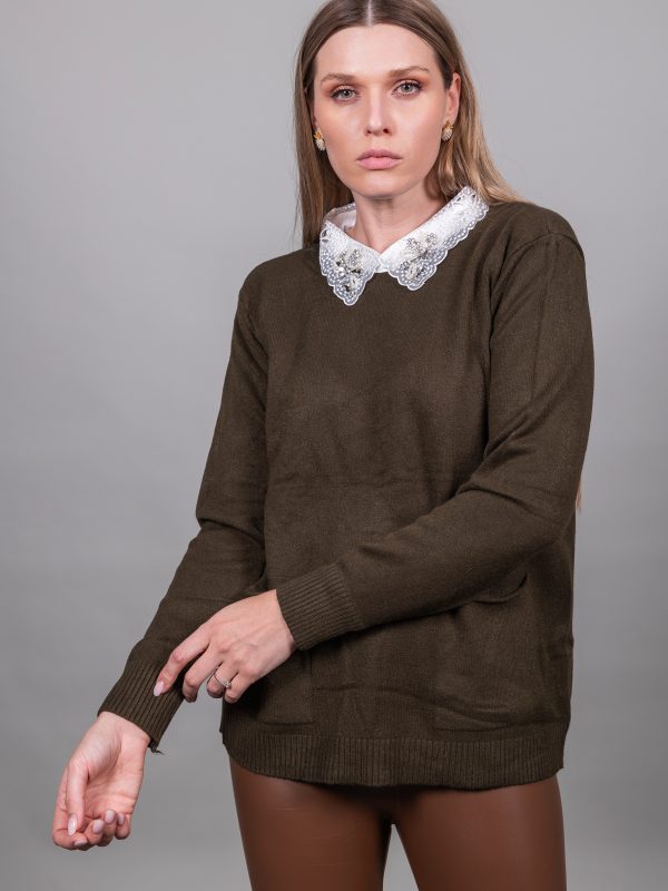 μπλούζα πλεκτή χοντρή με λαιμόκοψη που φοριέται όλες τις ώρες