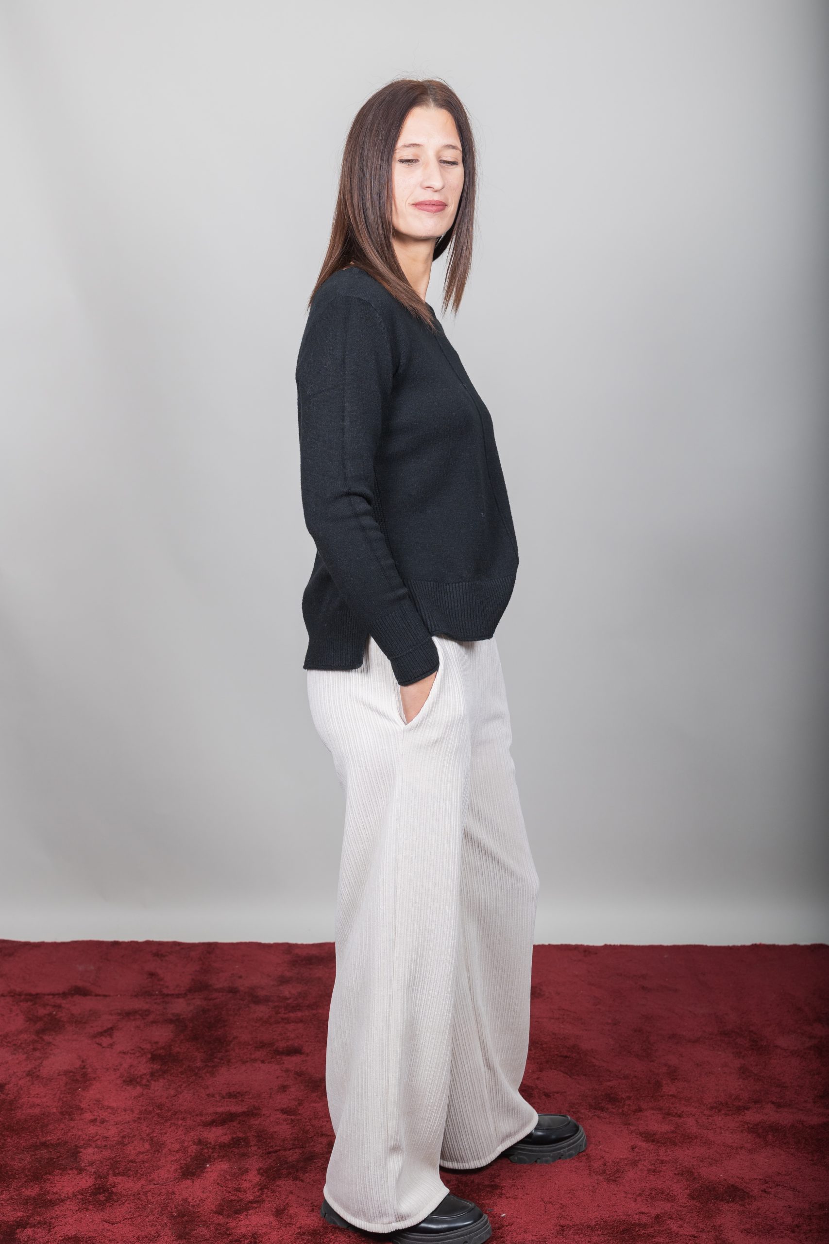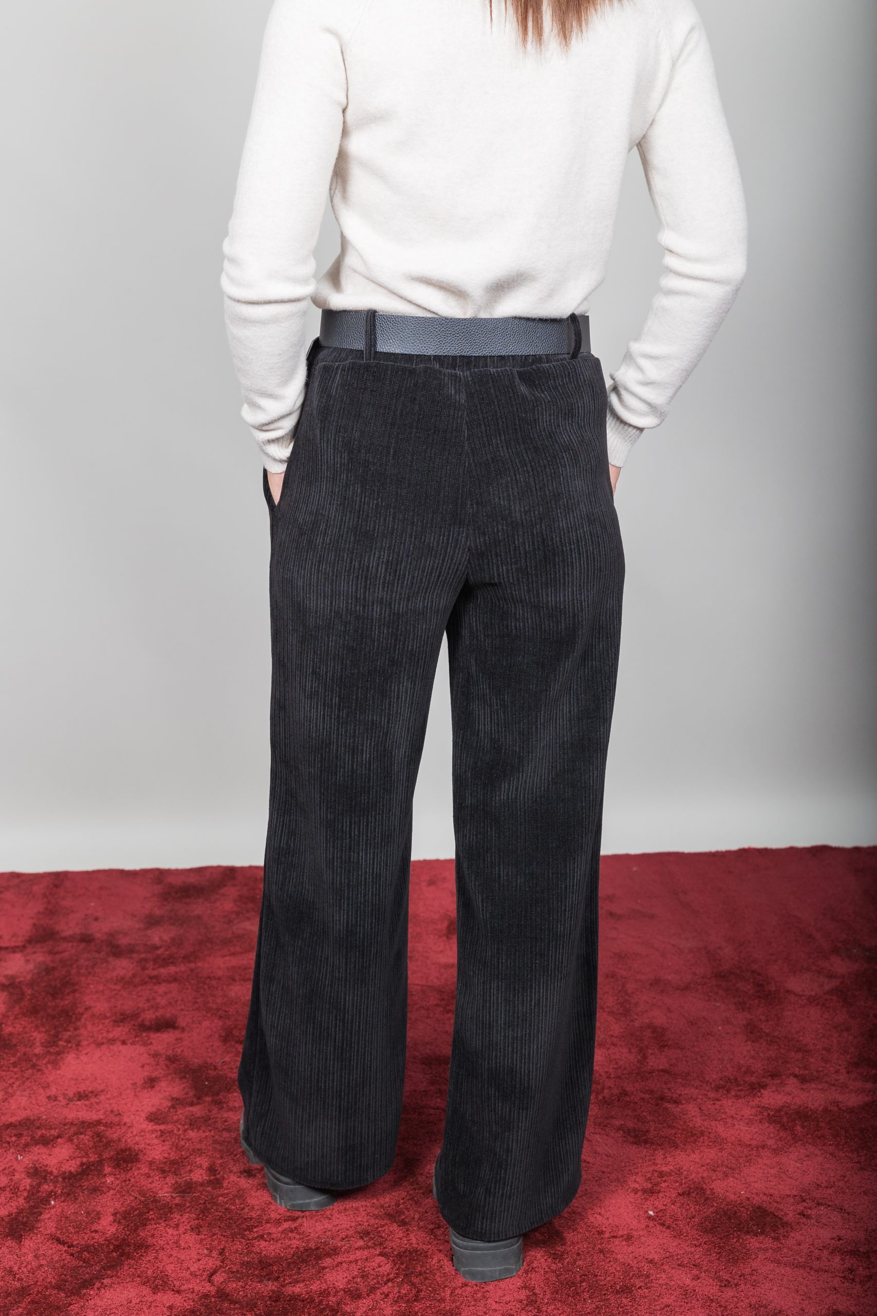 παντελόνα κοτλέ oversize με λάστιχο και ζώνη μαύρη στην μέση