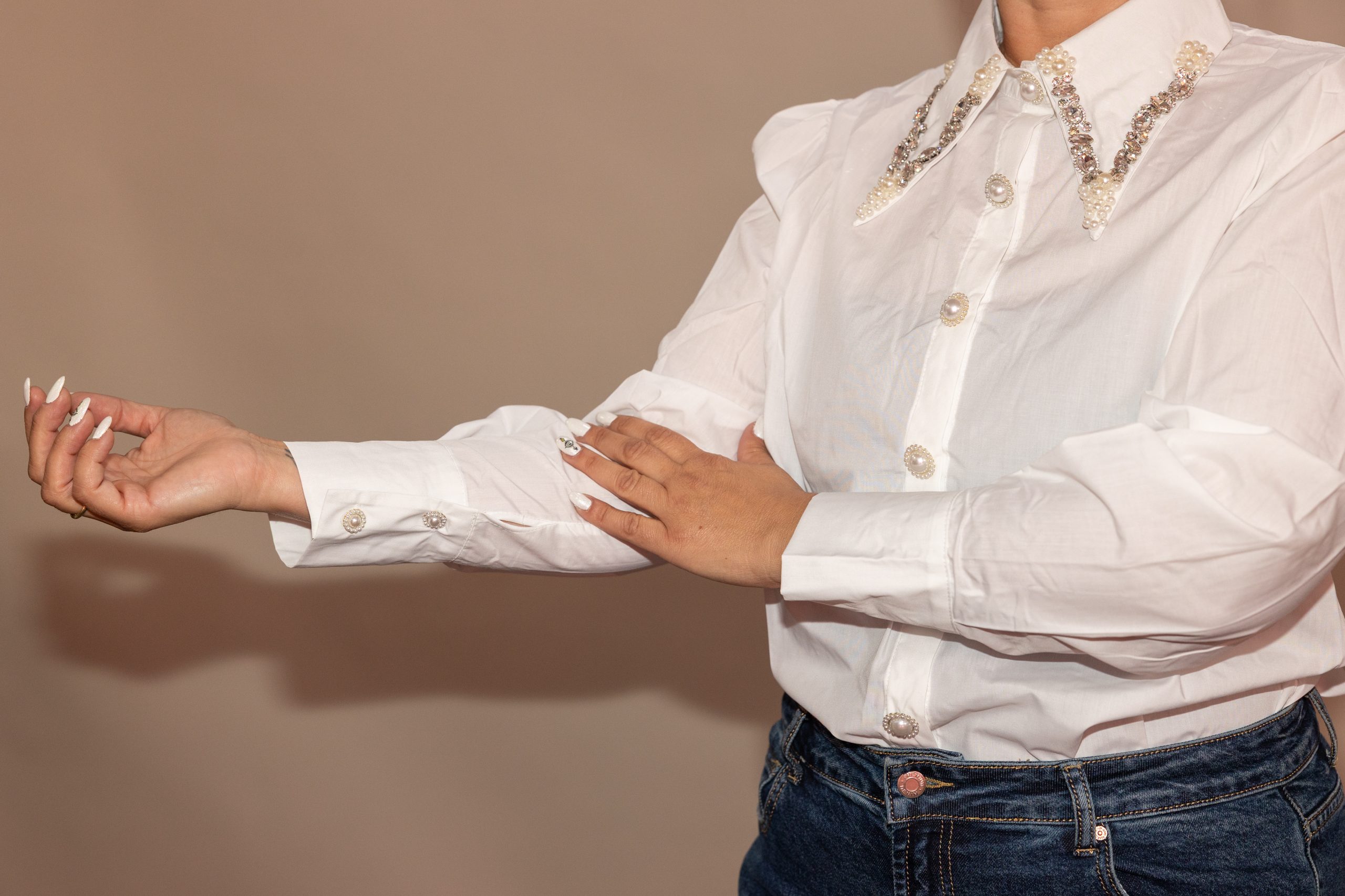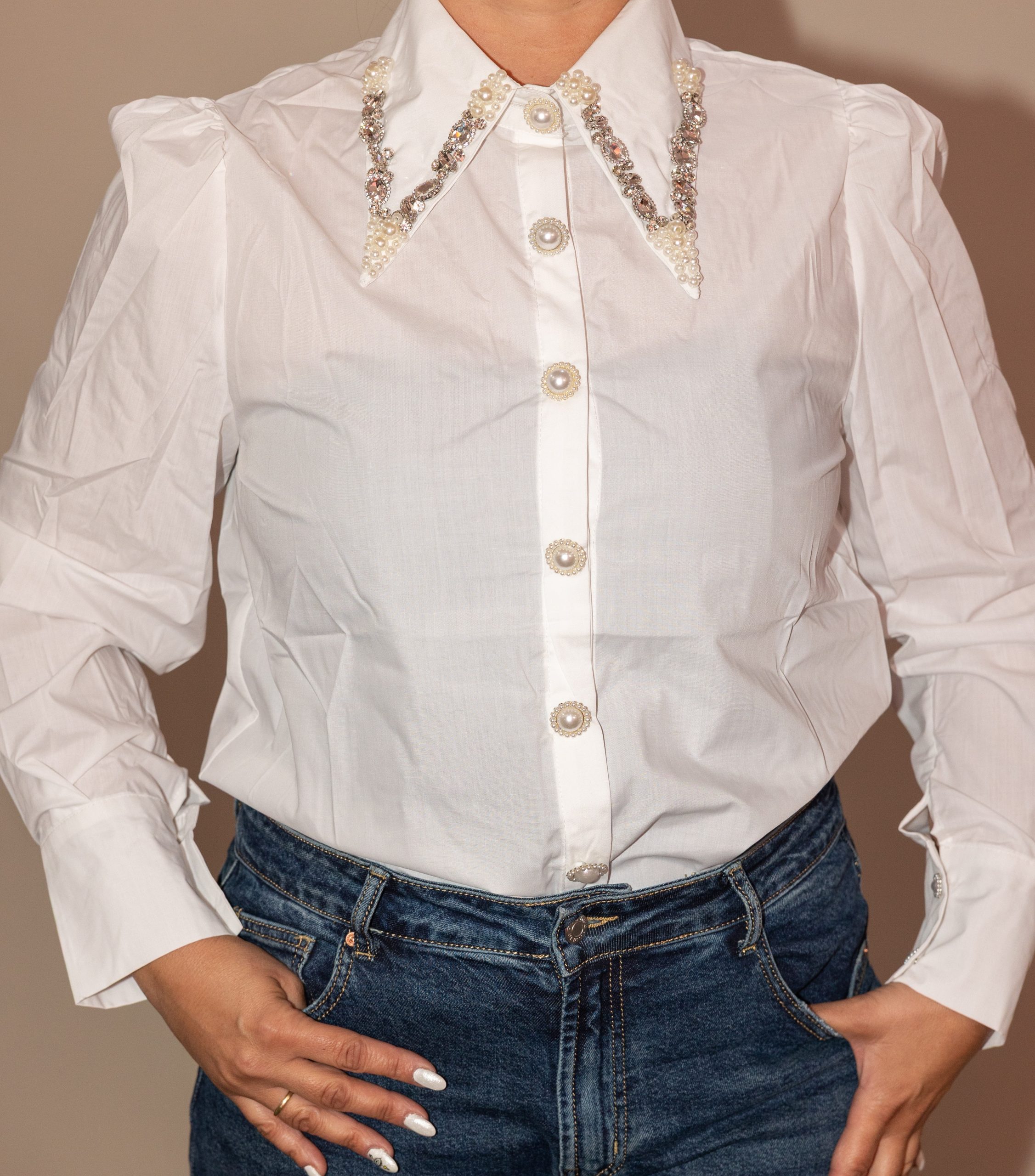 Πουκάμισο με πέτρες στον γιακά και κουμπιά με λευκή πέρλα