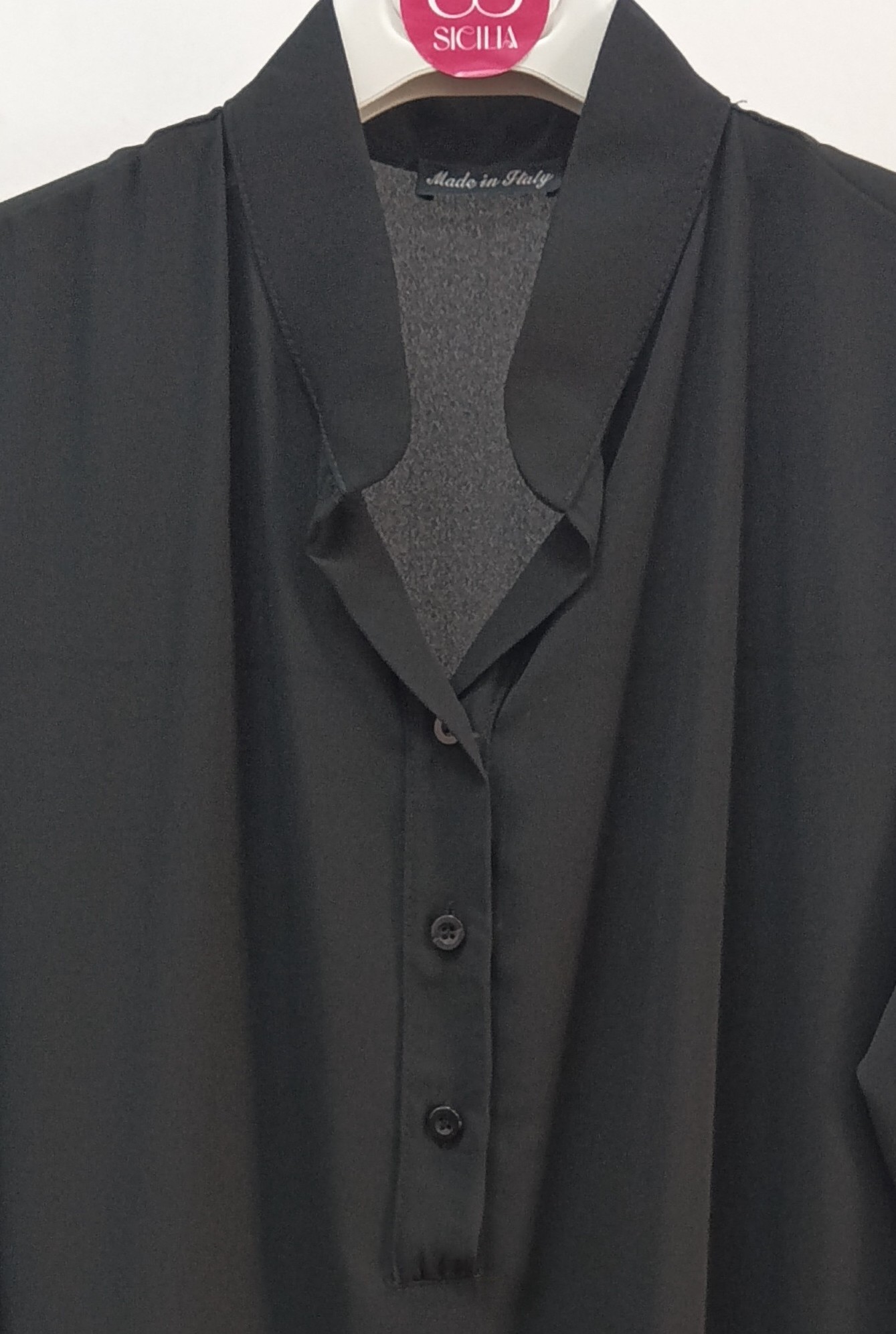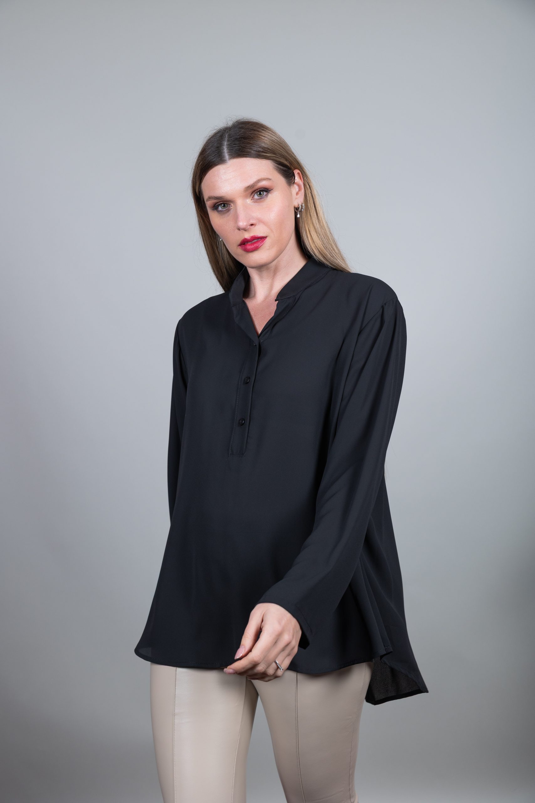 - με κοντό γιακά και τρία κουμπιά στο μπροστινό μέρος