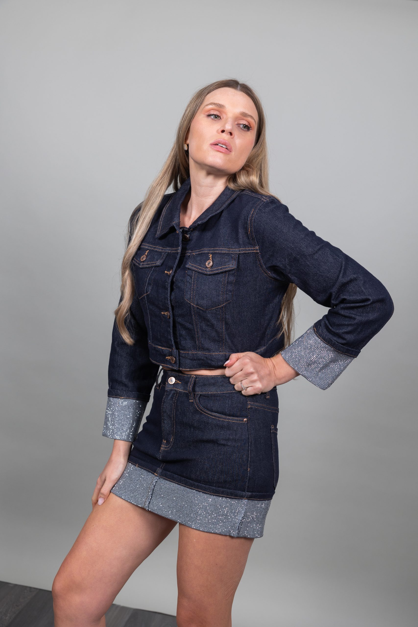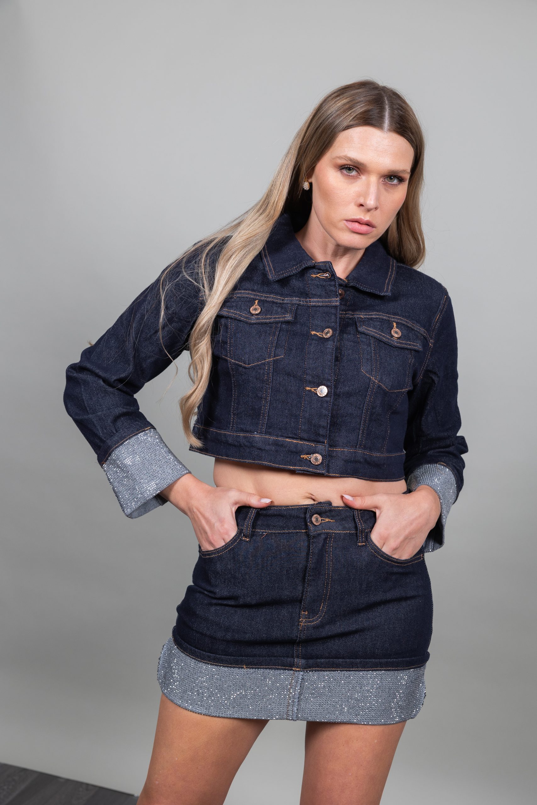 Gean jacket γυναικείο κοντό με στρας στη μανσέτα