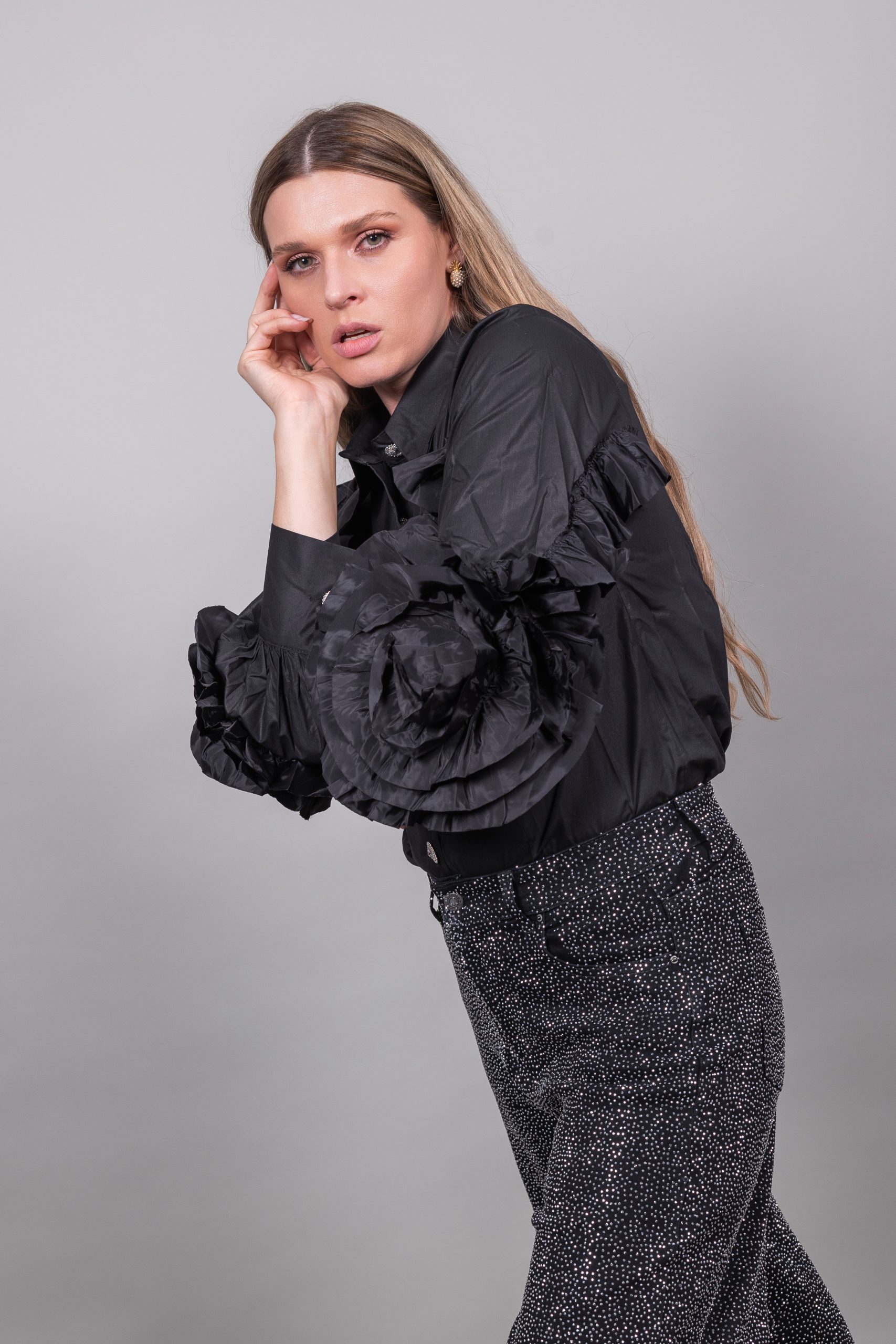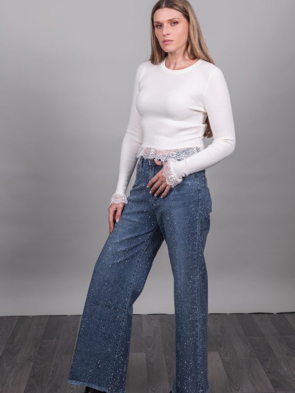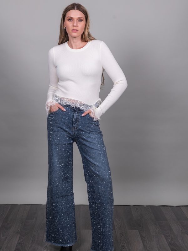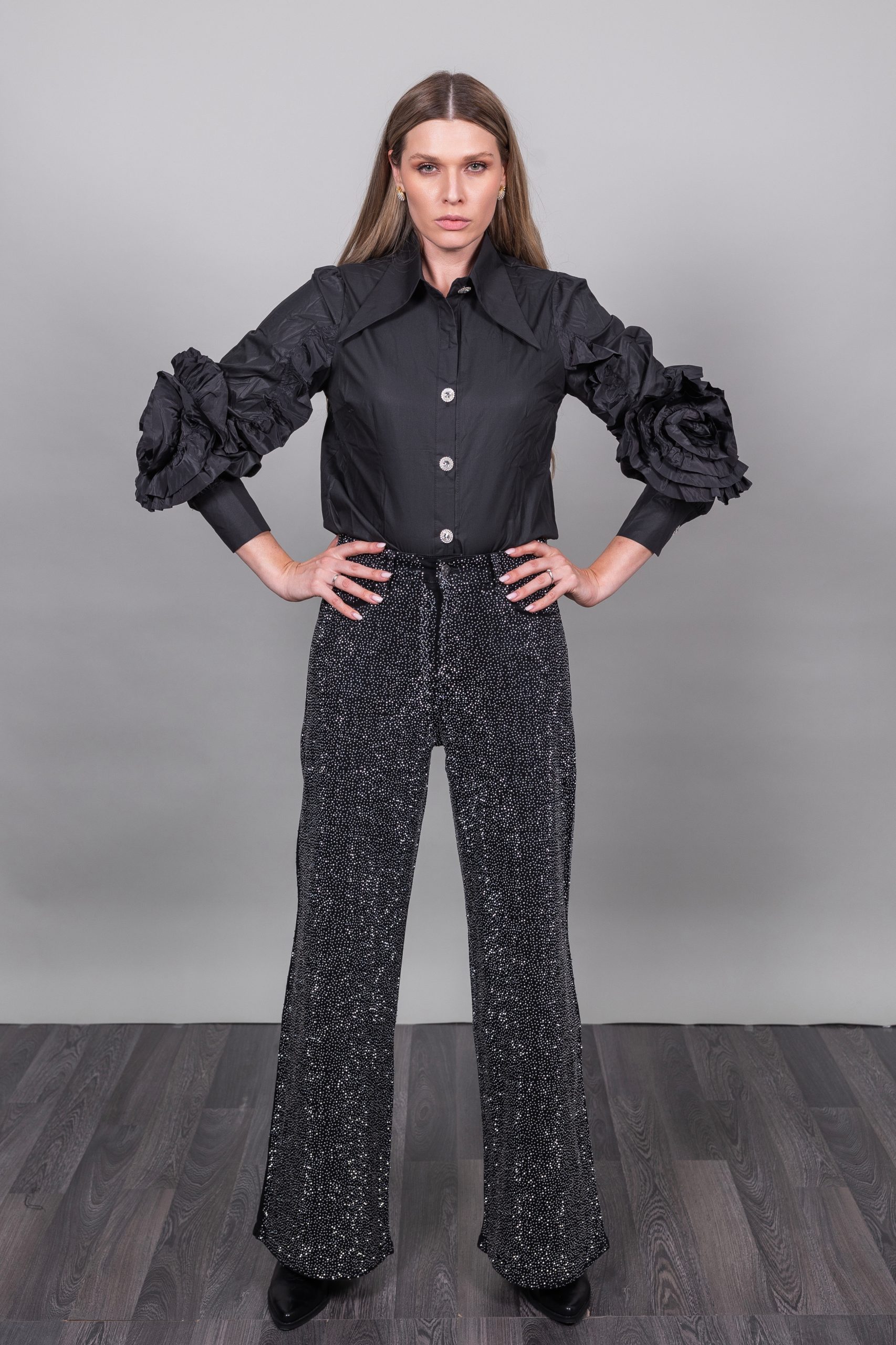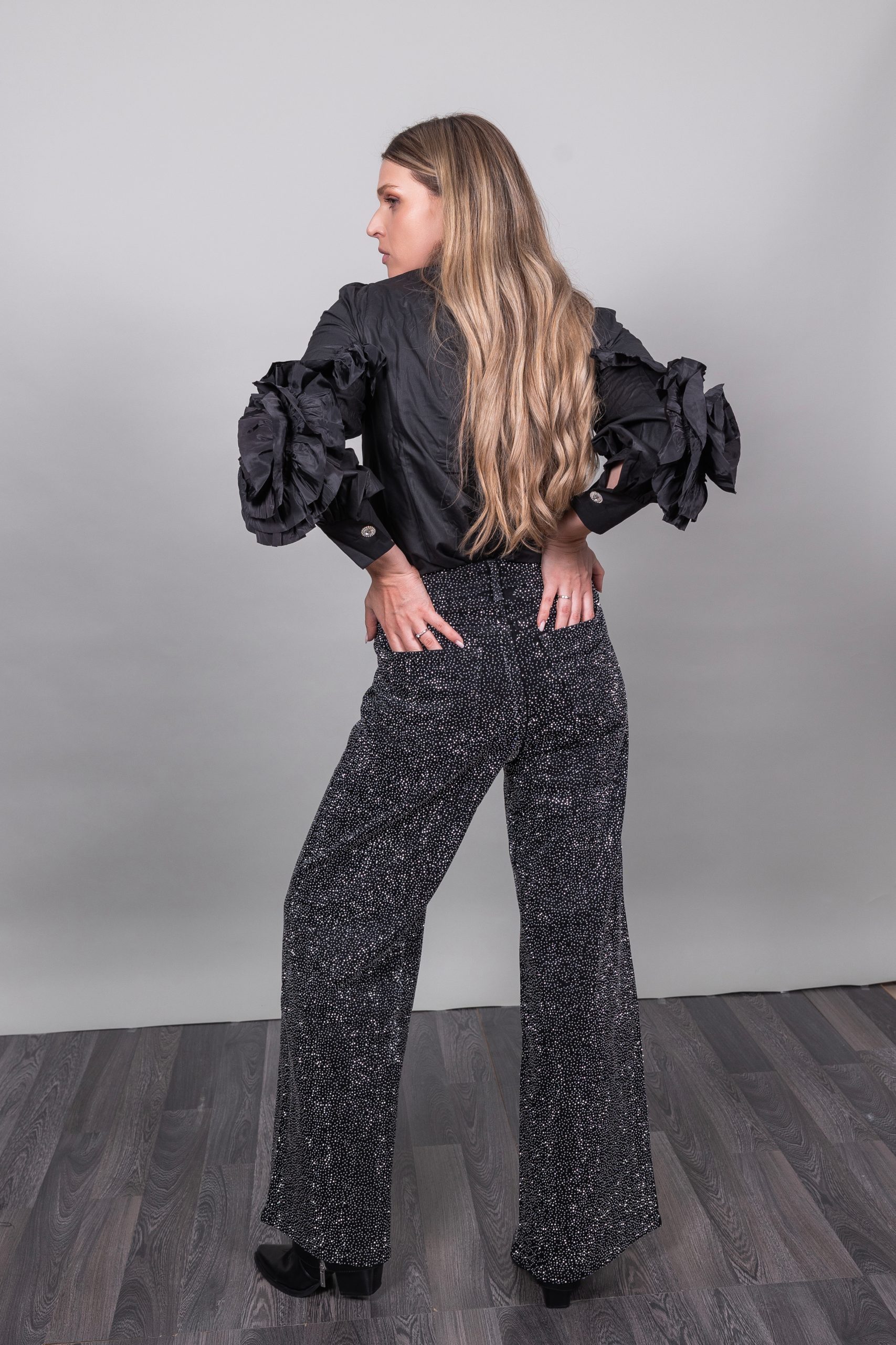 Τζιν με στρας σε μαύρο χρώμα καμπάνα ελαστικό