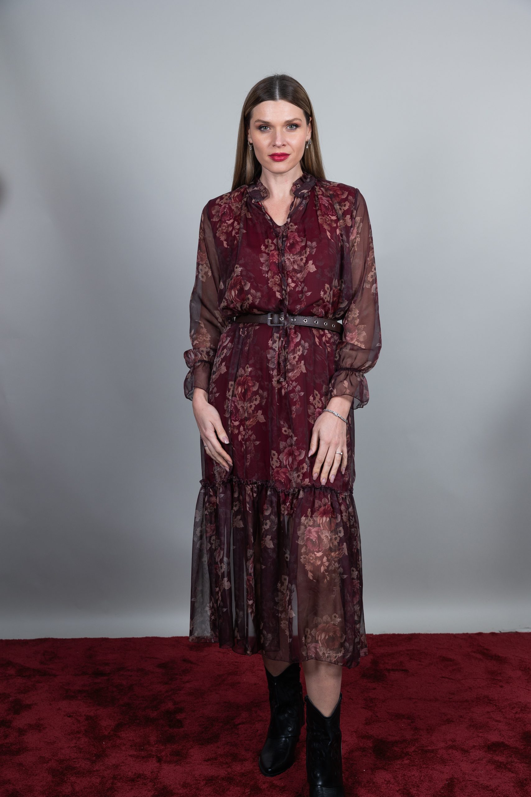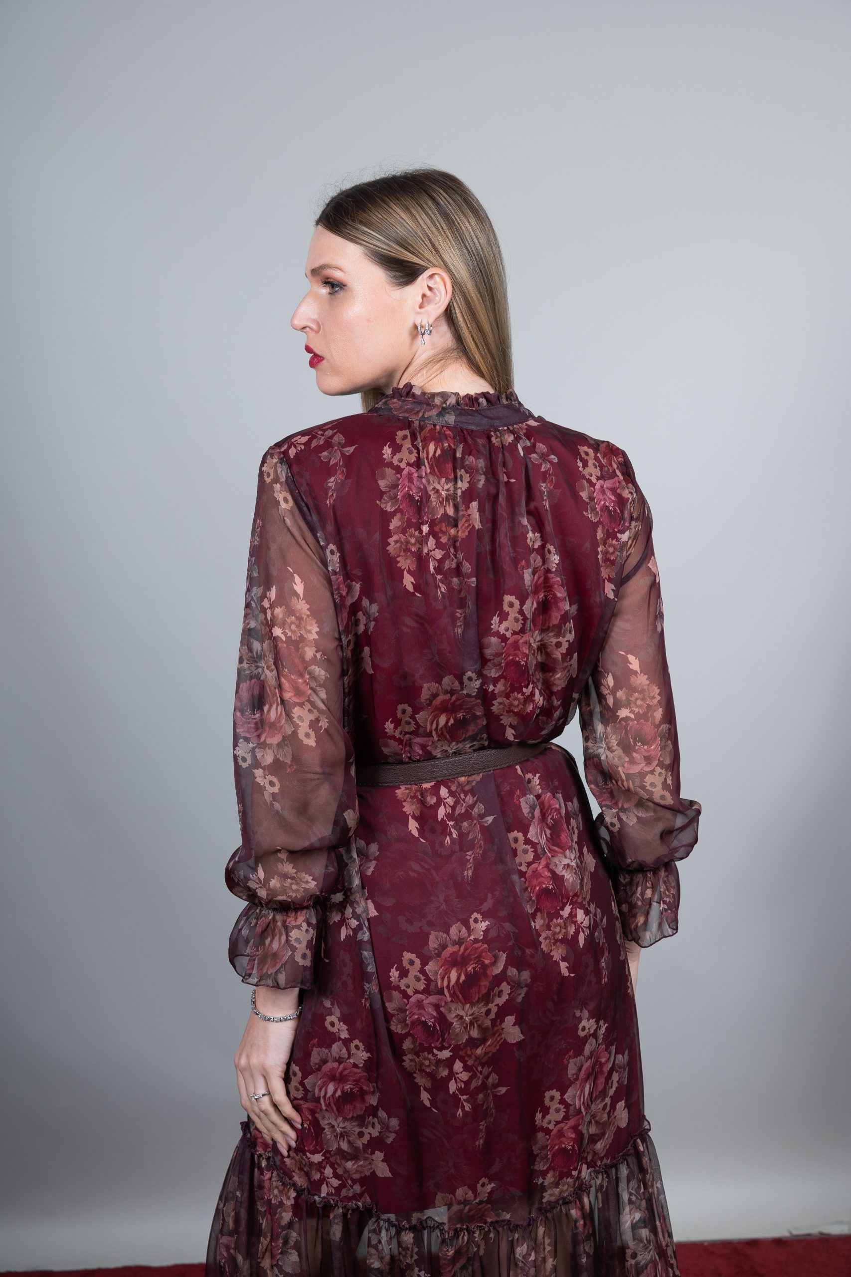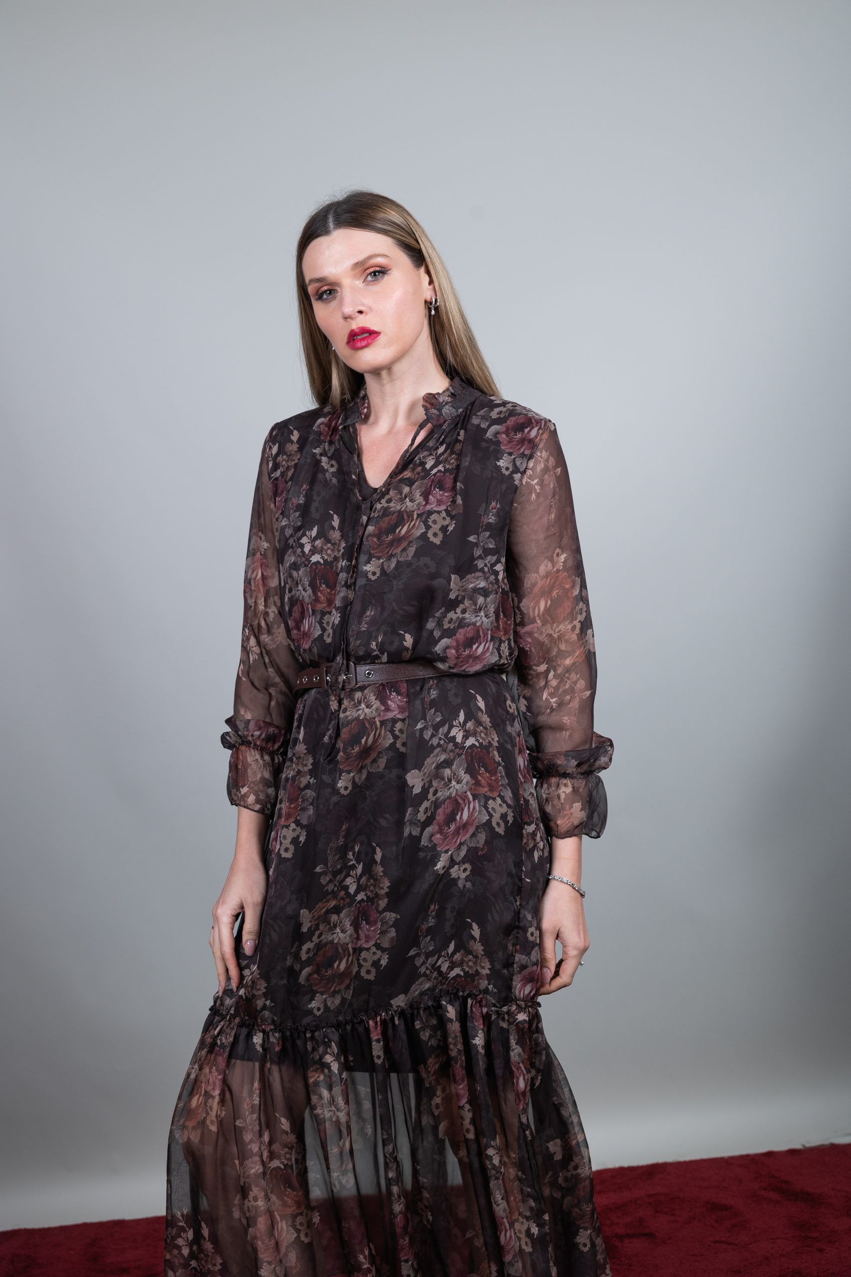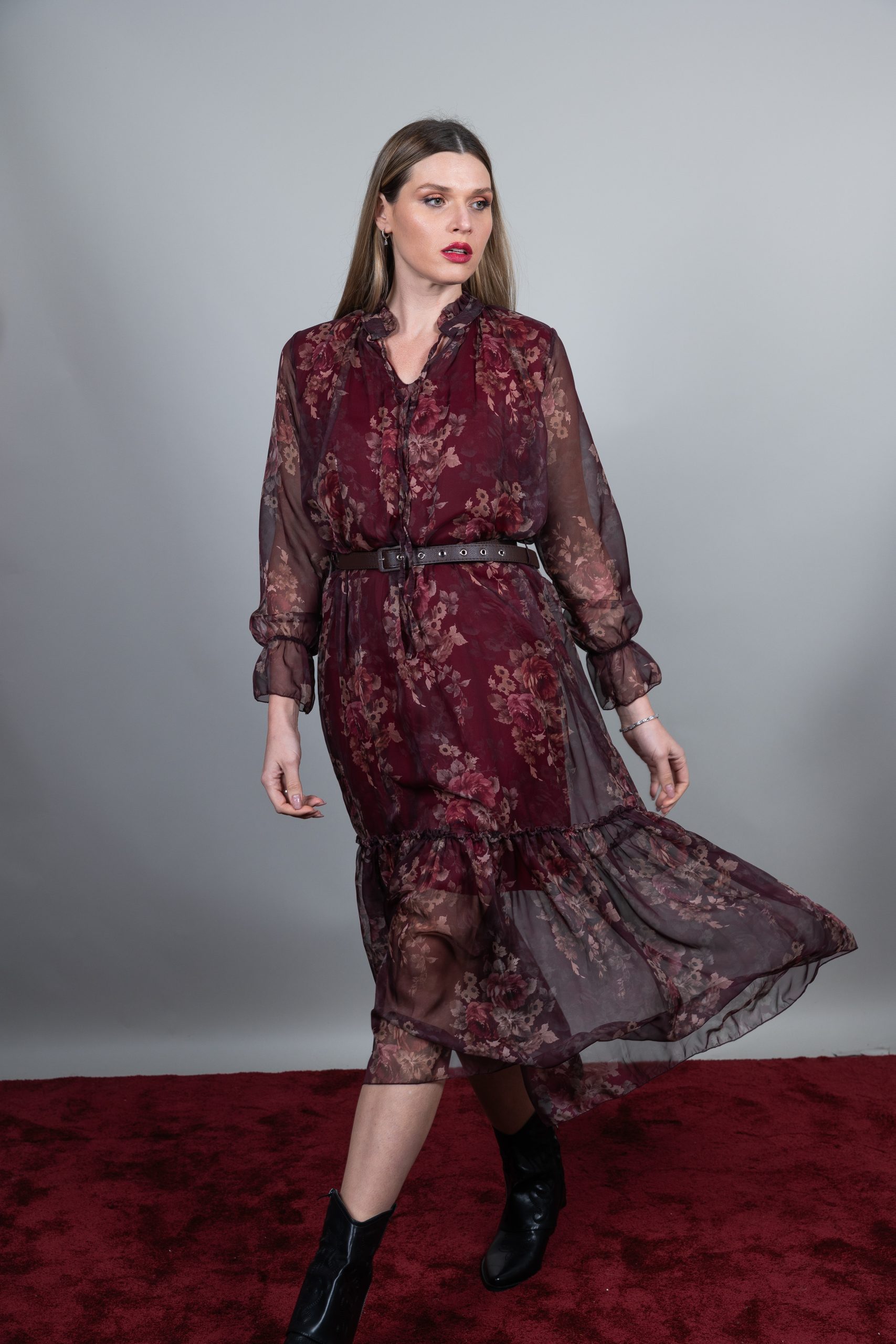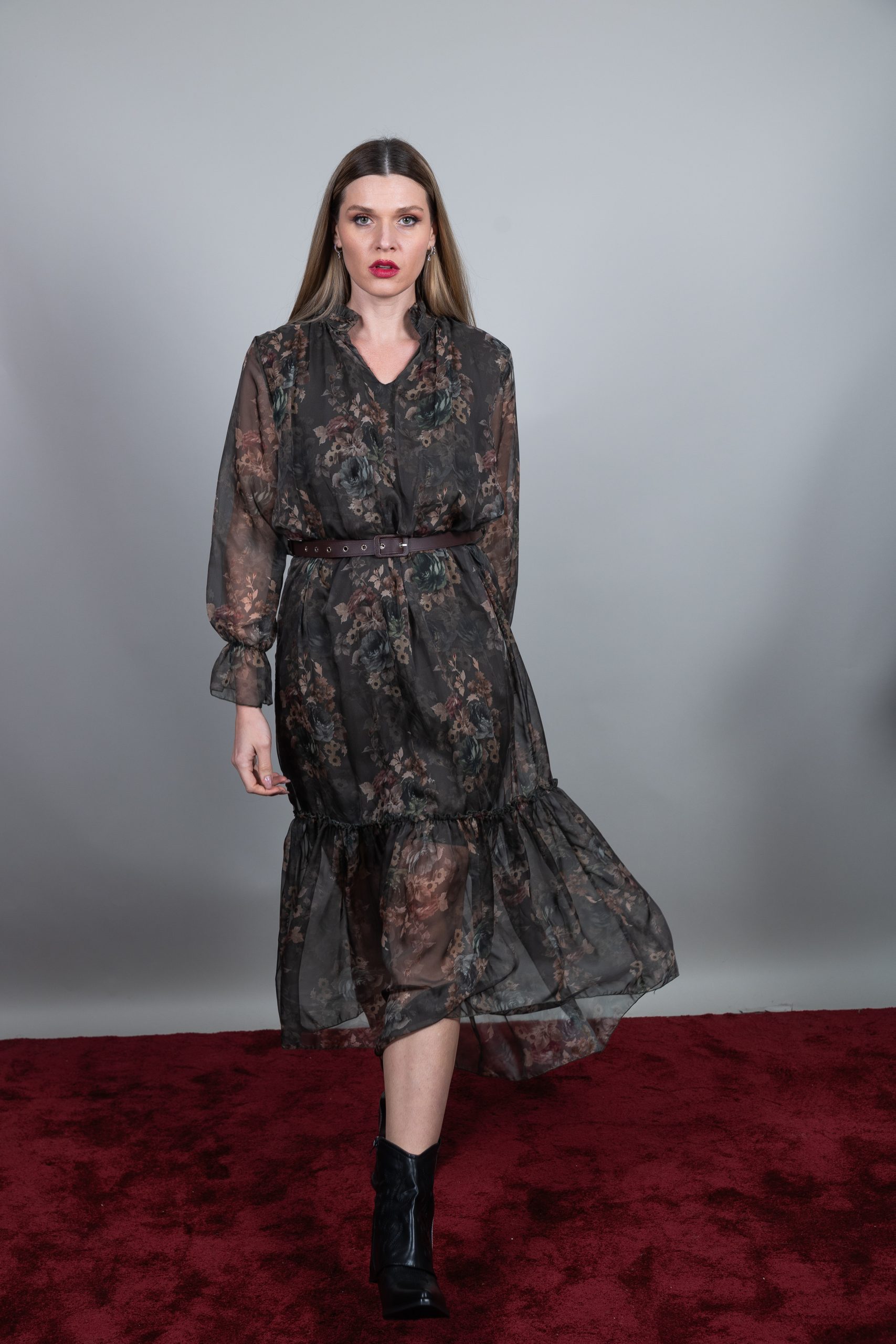 φόρεμα μακρύ floral με ζωνάκι στην μέση